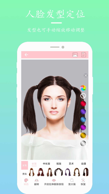 通過一張自拍照就能適配700多種發(fā)型,自動(dòng)識(shí)別頭發(fā)位置,可縮放拉伸調(diào)整位置,一鍵搭配。 網(wǎng)羅市面上熱門發(fā)型,有長(zhǎng)發(fā)、中長(zhǎng)發(fā)、短發(fā)、男士短發(fā)、藝術(shù)發(fā)型、動(dòng)漫發(fā)型、卷發(fā)等。 每種發(fā)型可以根據(jù)需要選擇染發(fā)顏色。 一鍵隨機(jī)發(fā)型功能讓您快速找到合適的發(fā)型。